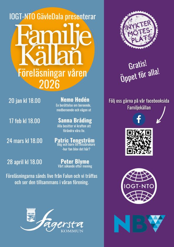 Familjekällan Information om FamiljekällanPlats: Sveasalongen, Datum: 2026-02-17 Starttid: 18.00 Telefonnummer: 0223-10359 Epost: protest@iogt.se